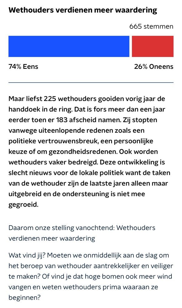 Al in januari jongstleden stemde Nederland met een ruime driekwart meerderheid vóór meer waardering voor wethouders.